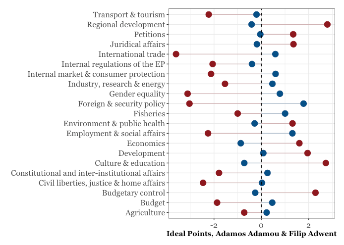 xlab("Ideal Points, Adamos Adamou & Filip Adwent") +